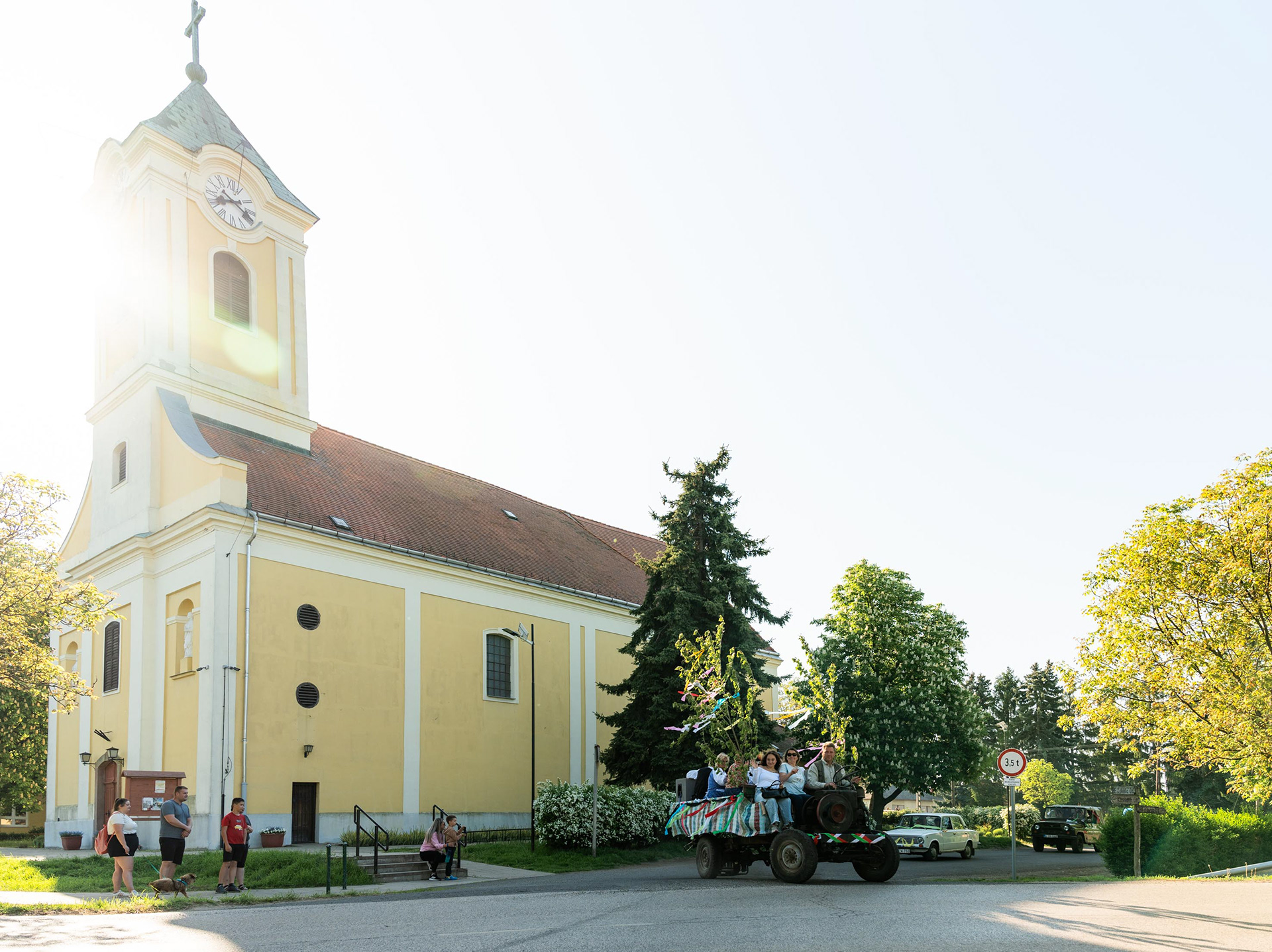 Máté ötös Golfja egy csodálatos naplementében napraforgós háttérrel.