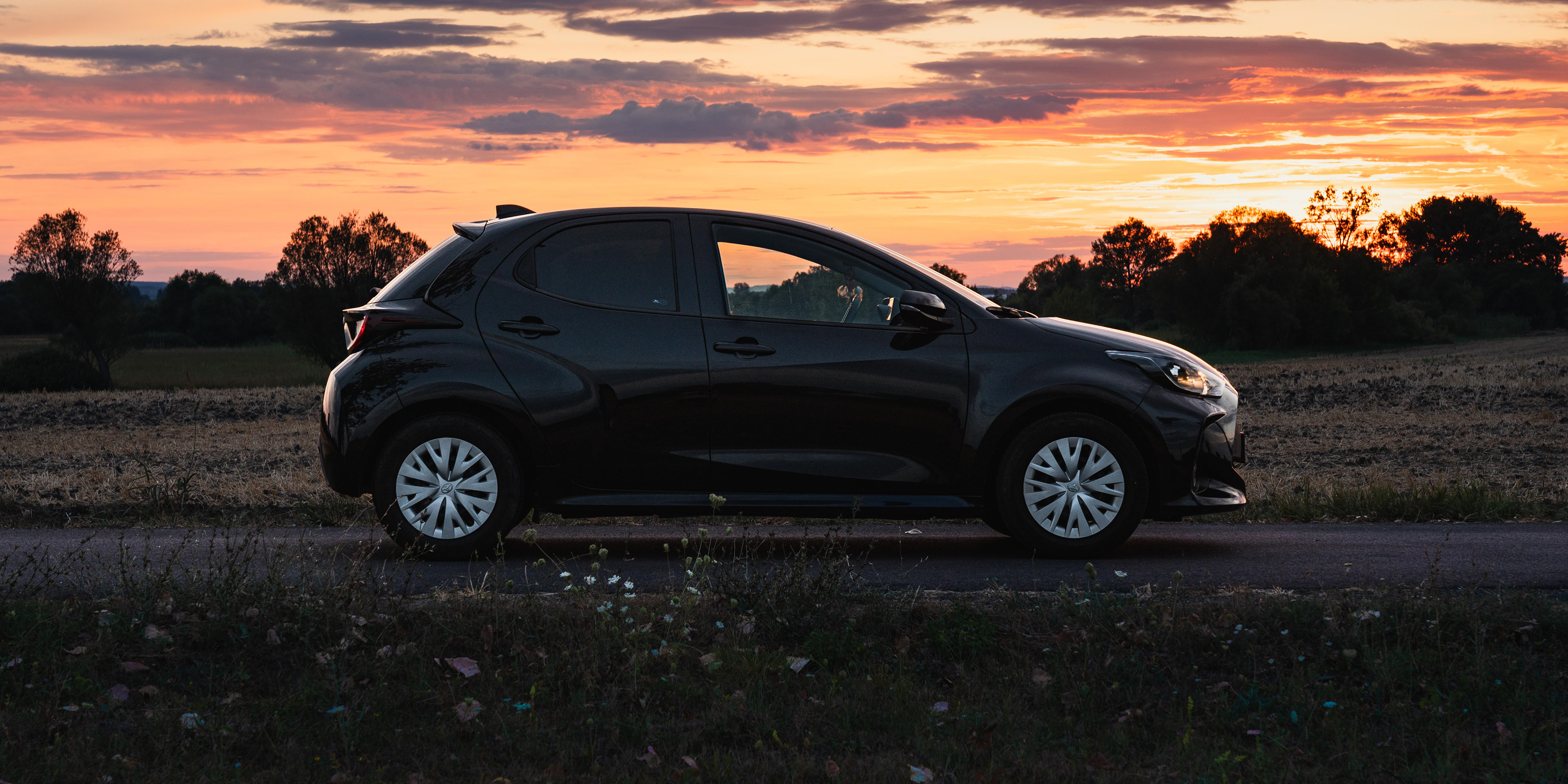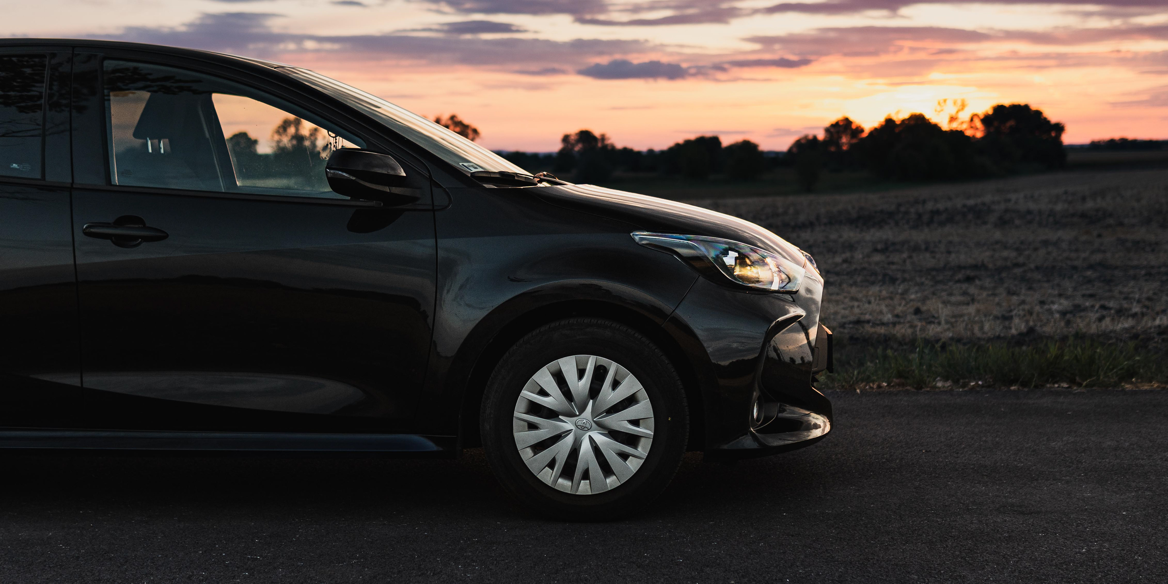 Gyakorlásképpen elkötöttem anyukám fekete Yarisát, hogy megörökíthessem ebben a gyönyörű naplementében.